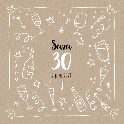 Hippe Verjaardagsuitnodiging 25 Jaar Vrouw Met Illustraties Op Kraft