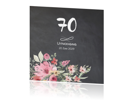 Uitnodiging 70ste Verjaardag Krijtbord Met Aquarel Bloemen