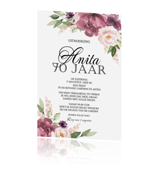 Uitnodiging Voor 70e Verjaardag Vrouw Met Roze En Paarse Bloemen