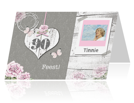 90 Jaar Verjaardagskaart Vrouw Met Wit Hart En Hout