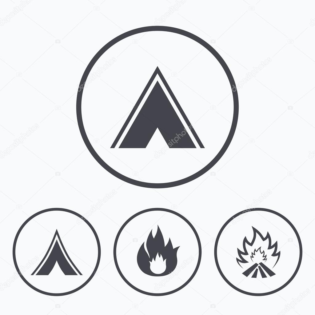 Toeristische Camping Tent Tekenen Pictogrammen Van De Vlam Van Vuur Stockvector C Blankstock 105609420