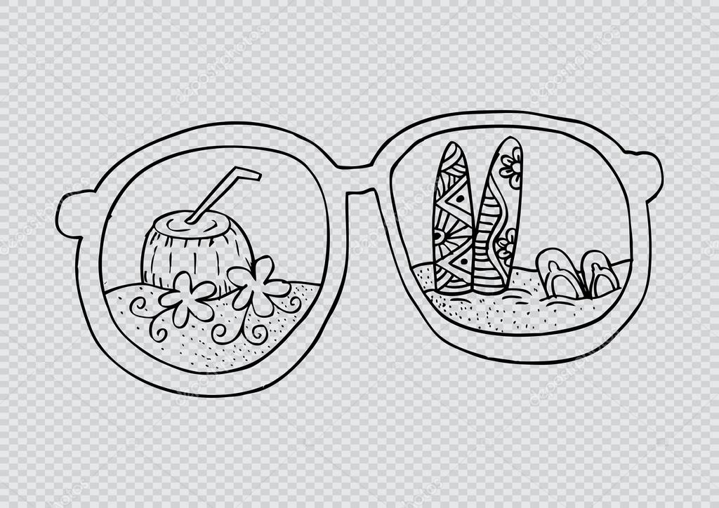 Summer Beach With Sunglasses Hand Drawing Illustration Stock