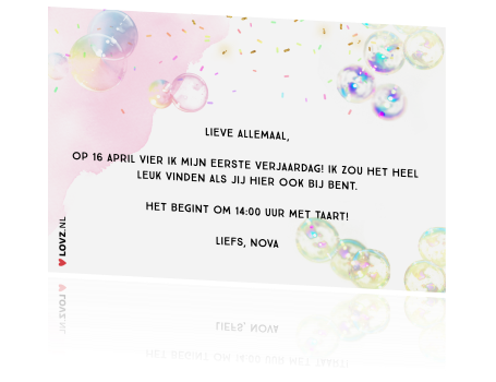 Bellenblaas Uitnodiging Eerste Verjaardag Meisje