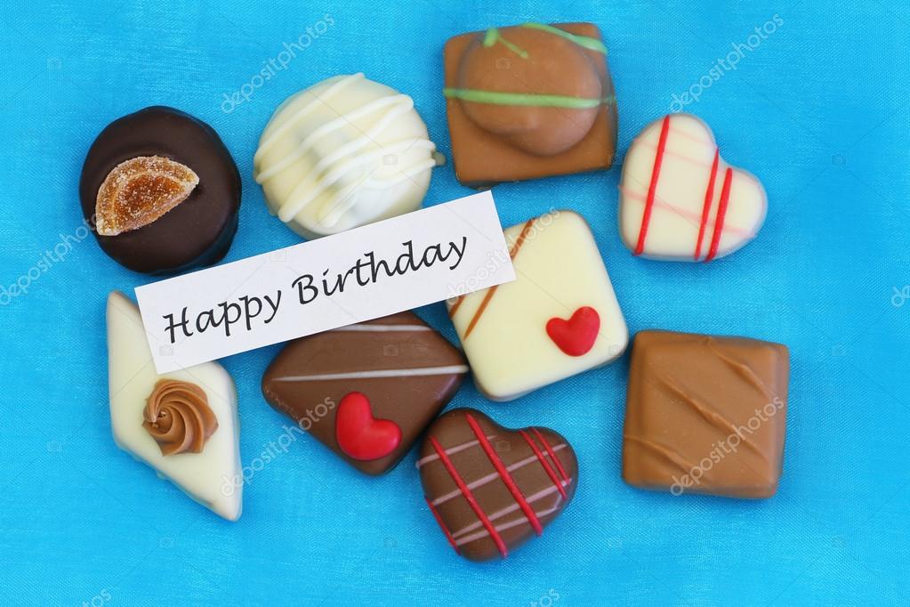 Gelukkige Verjaardag Card Met Selectie Van Chocolade Stockfoto