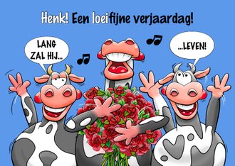 Grappige Verjaardagskaart Met 3 Koeien En Rozen Kaartje2go
