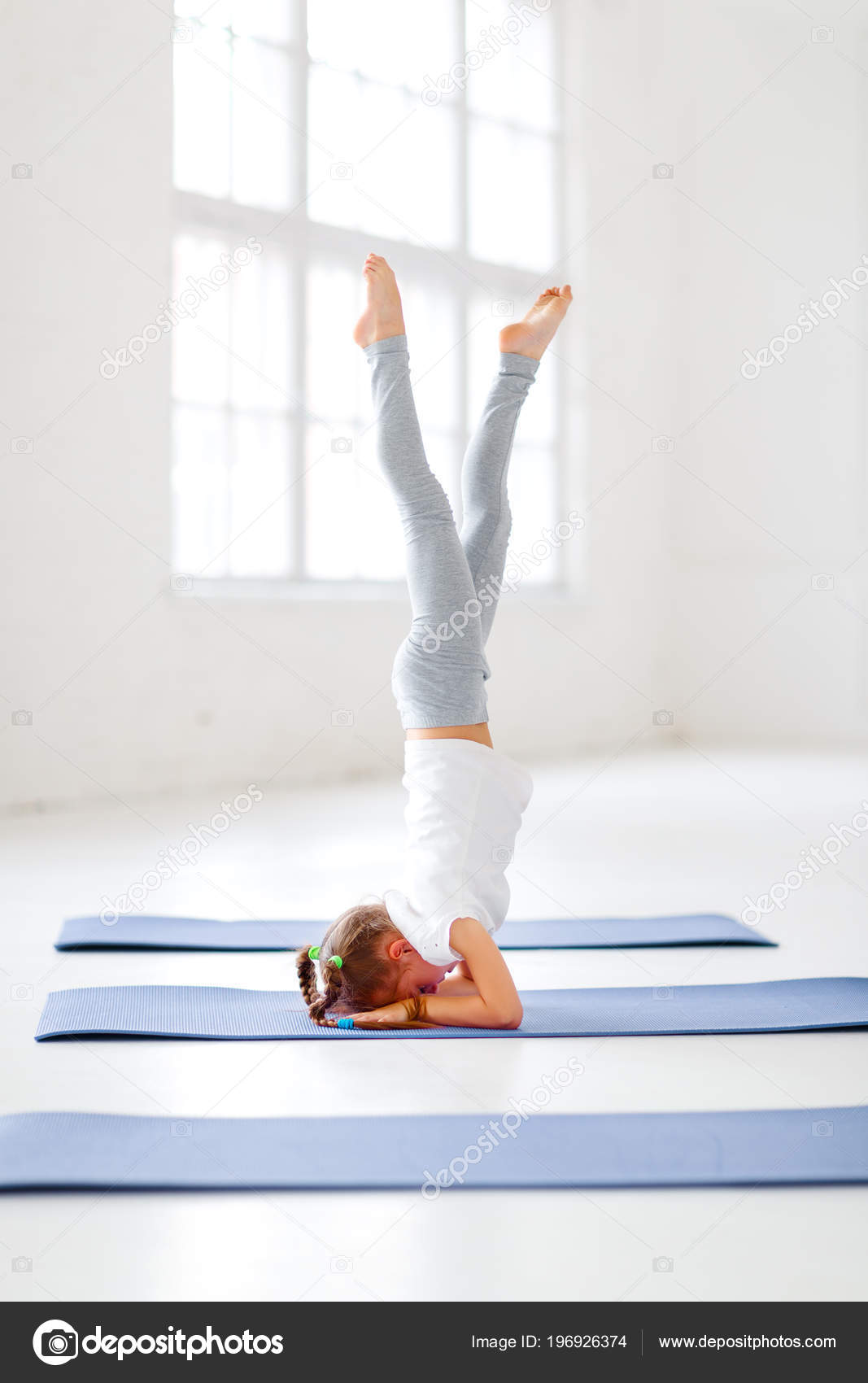 Kind Meisje Doen Yoga Turnen Stockfoto C Evgenyataman 196926374