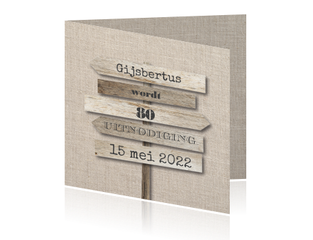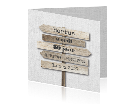 Uitnodigingskaart Verjaardag Feest Man 80 Jaar Met Houten Bord