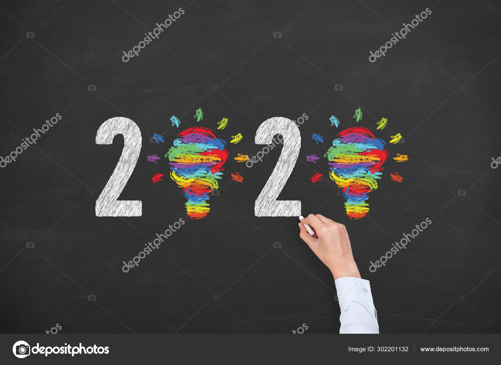 Human Hand Drawing New Year 2020 Creative Idea Concepts Blackboard