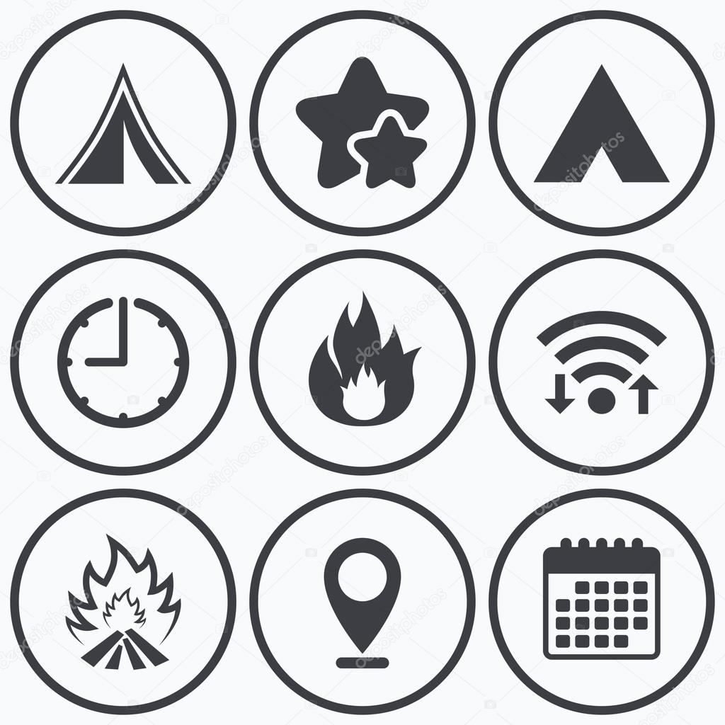 Toeristische Camping Tent Tekenen De Pictogrammen Van De Vlam Van