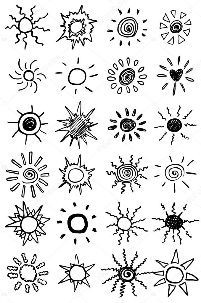 Schets Zon Kinderen Tekenen Hand Getekende Sunshine Pictogrammen