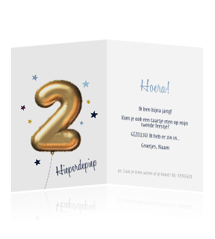 Uitnodiging Verjaardag 2 Jaar Jongen Gouden Ballon