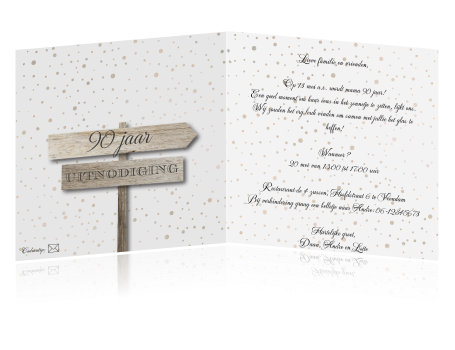 Verjaardags Uitnodiging Vrouw 90 Jaar Met Houten Tekst Bord