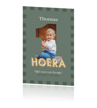 Stoere Uitnodiging Voor De Eerste 1 Verjaardag Met Eigen Foto