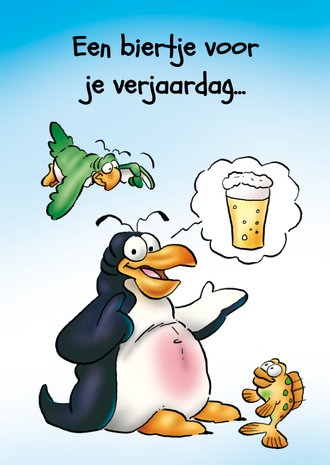 Penguins Verjaardag 21 Pinguin Met Glas Bier Kaartje2go