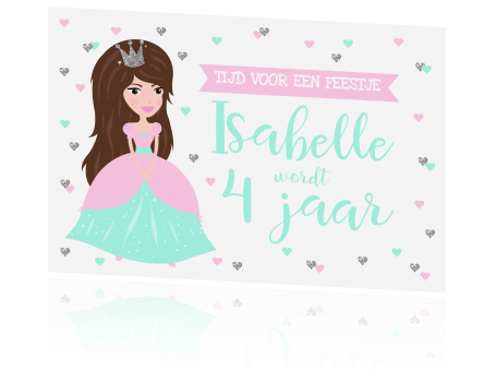 Uitnodiging Verjaardagsfeestje Meisje Met Prinses En Hartjes