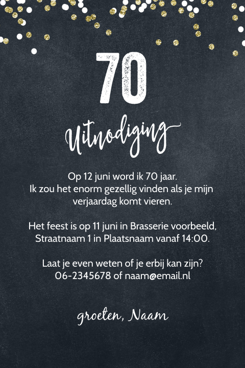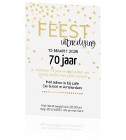 Stijlvolle Trendy Uitnodiging Met Gouden Confetti 70 Jaar