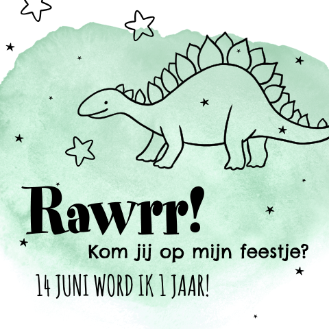 Stoere Uitnodiging 1e Verjaardag Jongen Met Tekening Dinosaurus