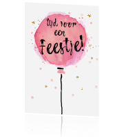 Uitnodiging Verjaardag Roze Aquarel Ballon Typografie