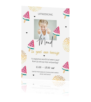 Hippe Verjaardagsuitnodiging Met Meloen Ijsjes En Eigen Foto