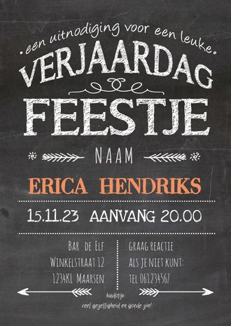 Uitnodiging Krijtbord Verjaardag Tekst Av Kaartje2go