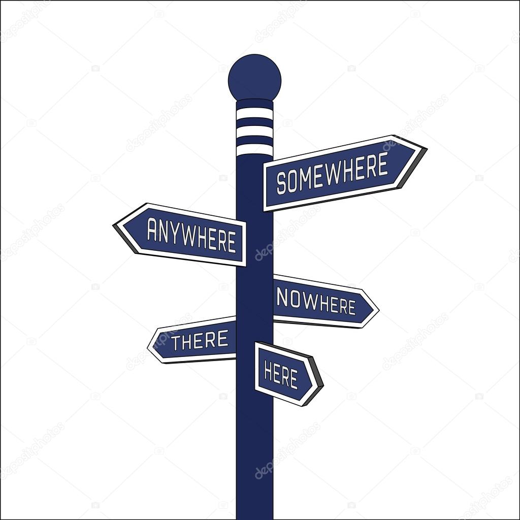 Blue Signpost Direction Signs Here There Anywhere Nowhere